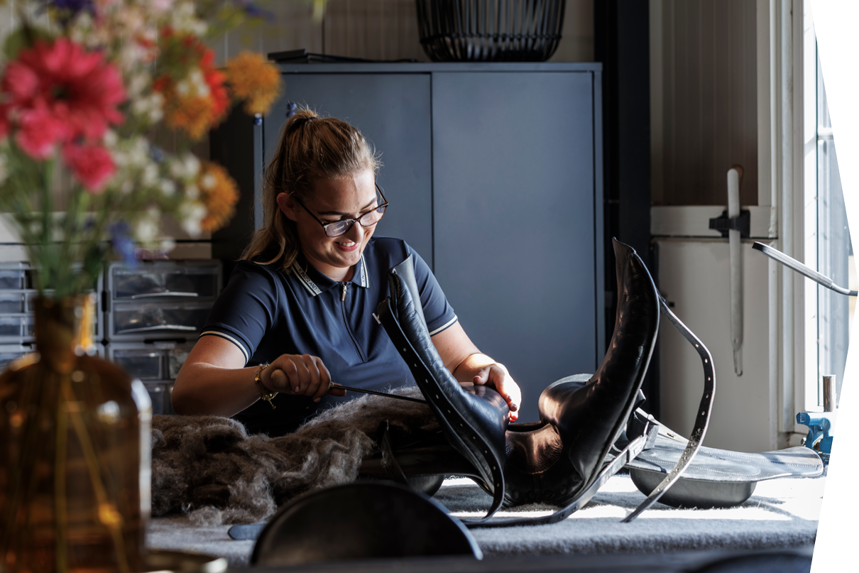 De laatste aanpassingen aan het zadel vinden plaats in onze volledig uitgeruste (mobiele) werkplaats. Hier zorgen we ervoor dat het zadel tot in detail wordt afgestemd op jouw paard. Denk daarbij aan het nauwkeurig verstellen van het kopijzer, het bijvullen of herverdelen van wol, en het optimaliseren van de balans.